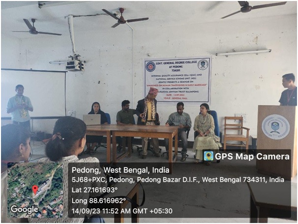 The NSS, IQAC and Bal Suraksha Abhiyan Kalimpong jointly organized a seminar on ‘Awareness on Human Trafficking and Early Marriage’ on 14.09.2023. The students were thoroughly made aware on issue of human trafficking and early marriage by the team from BSA, Kalimpong.